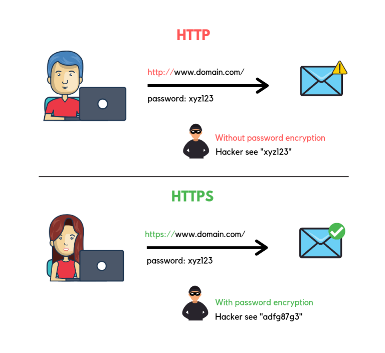 The difference between HTTP and HTTPS is that HTTPS encrypts the data it transmits, while HTTP doesn’t.