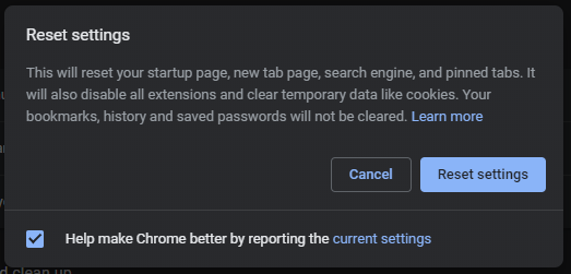 4. Reset Google Chrome Browser to Fix Err_Cache_Miss Error