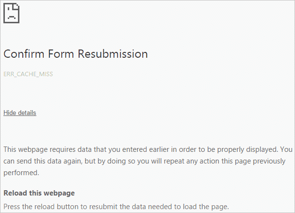 Confirm Form Resubmission means that the webpage is asking you to submit the data again, which means that the browser failed to cache the page due to some issues.
